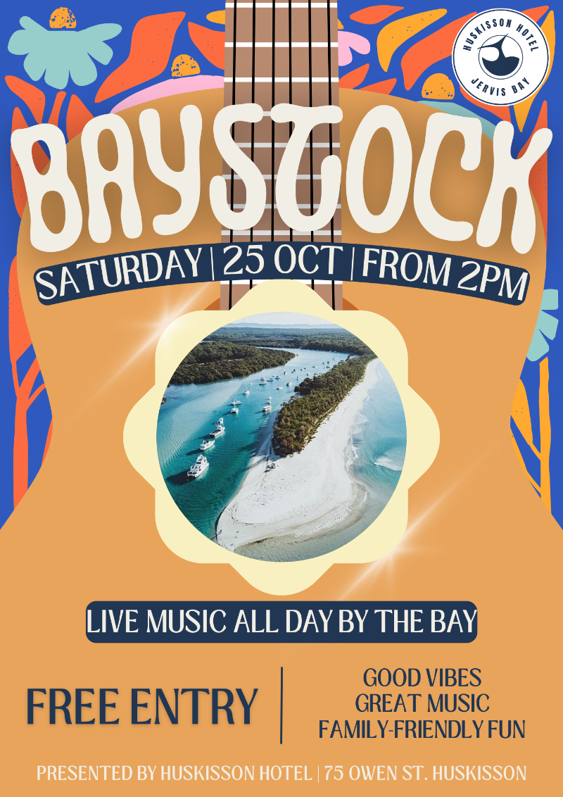 Huskisson Hotel is proud to present Baystock, a brand-new free community event celebrating live music by the bay. From the afternoon into the evening, soak up an epic lineup of local and touring acts, good vibes, and that unbeatable Husky Pub atmosphere – all with Jervis Bay as the backdrop.